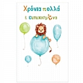 Ευχετήρια κάρτα με σχέδιο ένα ανάγλυφο λιονταράκι με μπαλόνια, λεκτικό "Χρόνια Πολλά & ευτυχισμένα" και χώρο μέσα στην κάρτα για να αναπτύξετε τις ευχές σας. Είτε πρόκειται για δώρο είτε για ατομική παρουσίαση αυτήν την κάρτα θα την θυμόμαστε!