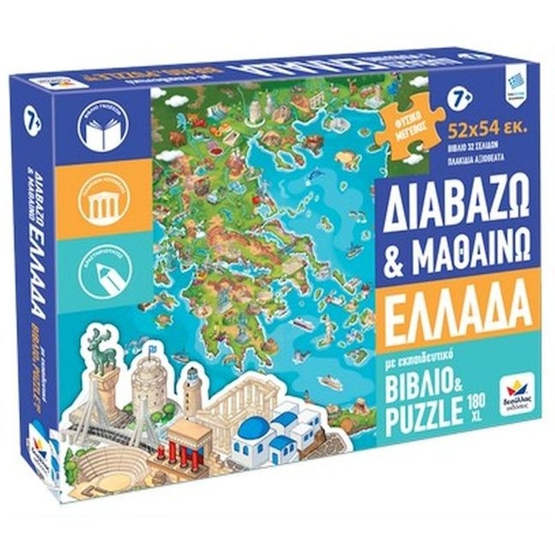 Φτιάξε το παζλ με το χάρτη της Ελλάδας και διάβασε το βιβλίο για να ταξιδέψεις σε μοναδικά μνημεία και αξιοθέατα της χώρας μας! Μέσα στο βιβλίο θα βρεις δραστηριότητες και παιχνίδια για ακόμα περισσότερη διασκέδαση!