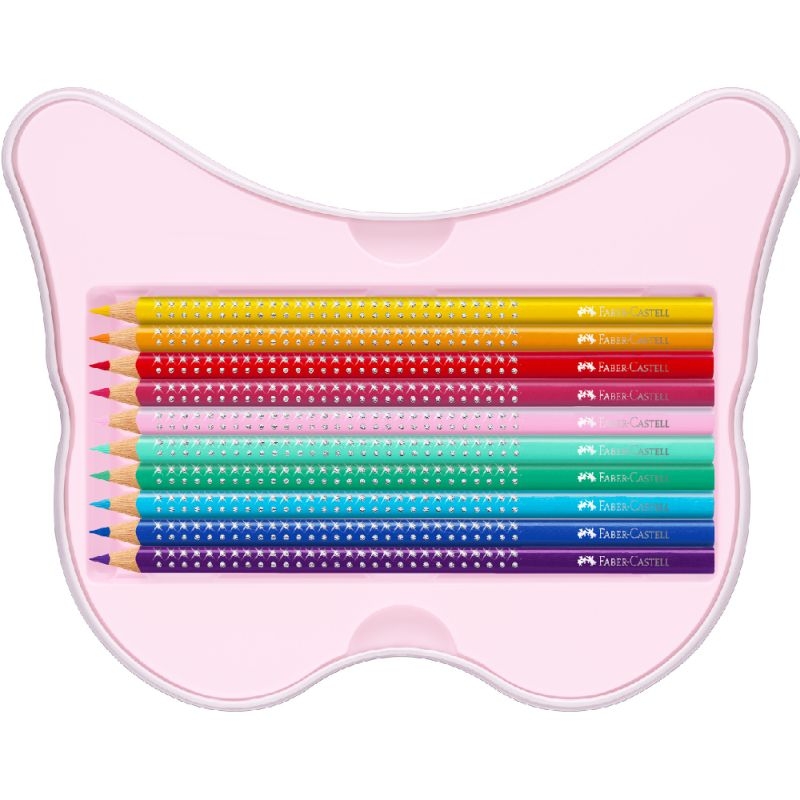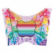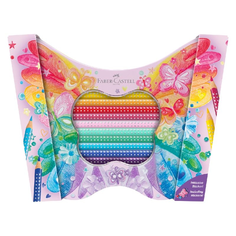 Μεταλλική κασετίνα με ξυλομπογιές Faber-Castell σε σχήμα πεταλούδας! Με Sparkle ξυλομπογιές που περιέχουν ελκυστικές κουκκίδες λάμψης.