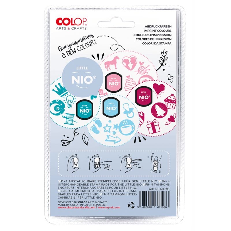 Προσθέστε χρώμα στις σημειώσεις σας με τα ταμπόν για τις αυτόματες σφραγίδες Little NIO σε υπέροχα pastel χρώματα! Κάθε ταμπόν με βάση το νερό μπορεί να εντυπωθεί πάνω στις περισσότερες απορροφητικές επιφάνειες και πραγματοποιεί περίπου 3000 σφραγίδες.