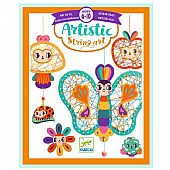Χειροτεχνία με κλωστές της σειράς Artistic της εταιρίας Djeco. Τα παιδιά καλούνται να χρησιμοποιήσουν βελόνα και χρωματιστές κλωστές για να δημιουργήσουν κρεμαστά διακοσμητικά για να στολίσουν το δωμάτιο τους! Μια πρωτότυπη χειροτεχνία που μεταφέρεται εύκολα και μπορεί να παιχτεί οπουδήποτε με ευκολία! Τα παιδιά περνούν τον χρόνο τους δημιουργικά και ταυτόχρονα καλλιεργούν τη λεπτή κινητικότητα τους, τον συντονισμό χεριού-ματιού και αναπτύσσουν την φαντασία τους!