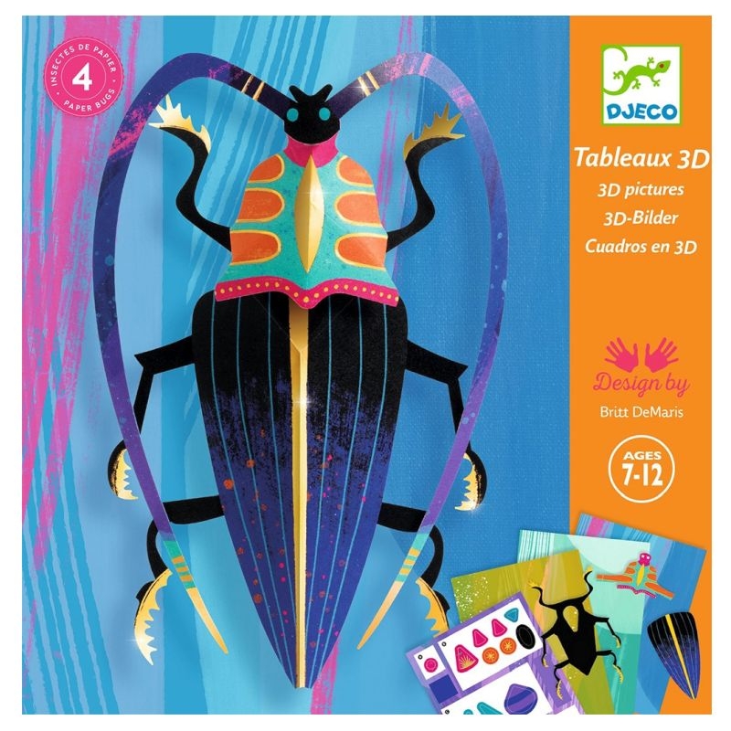 Κατασκευάστε τρισδιάστατα σκαθάρια με εντυπωσιακές χρυσές λεπτομέρειες και διακοσμήστε το δωμάτιο σας! Τα παιδιά παίρνουν προκομμένα κομμάτια από πεπιεσμένο χαρτόνι και τα συνθέτουν με αυτοκόλλητα διπλής όψης, έτσι ώστε να δημιουργήσουν 4 κάδρα με τρισδιάστατα έντομα. Μια πρωτότυπη χειροτεχνία της εταιρίας Djeco, που μαθαίνει τα παιδιά να ακολουθούν οδηγίες βήμα προς βήμα, καλλιεργεί την συγκέντρωση και υπομονή και αναπτύσσει συντονισμό χεριού-ματιού και την λεπτή κινητικότητα τους.