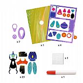 Περιλαμβάνει: 1 Υγρή κόλλα, 1 καρτέλα με ταινία διπλής όψης, 2 κάρτες & 23 για την δημιουργία των σκαθαριών , 4 κάρτες για στολισμό και εικονογραφημένες οδηγίες.