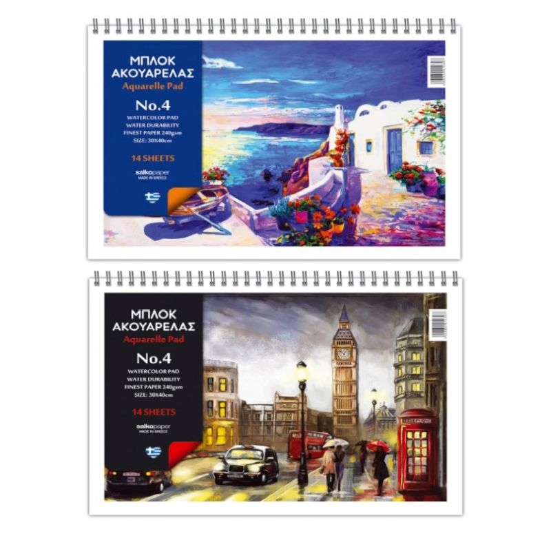 Μπλοκ ακουαρέλας σπιράλ Νο.4 (30x40/14Φ.) - Salkopaper