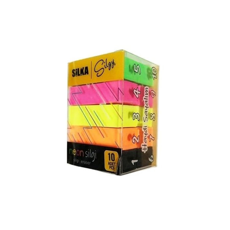 Μαλακές σβήστρες της  Silka 10 τεμαχίων σε 5 Neon χρώματα. Σβήνει χωρίς να αφήνει υπολείμματα (Dust Free) ή να ερεθίζει-χαλάει το χαρτί.