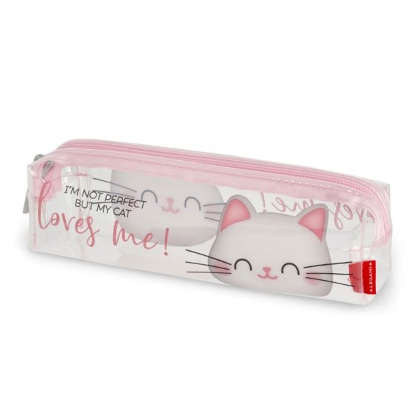 Η κομψή, διαφανής κασετίνα I' m not perfect but my cat loves me της Legami κλείνει με φερμουάρ και είναι κατασκευασμένη από TPU. Είναι ιδανική για στυλό, μολύβια, γόμες και οτιδήποτε άλλο χρειάζεστε στο σχολείο, στο χώρο εργασίας ή στον ελεύθερο χρόνο σας.