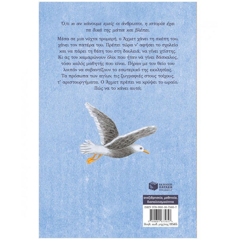 Μέσα σε μια νύχτα τρομερή, ο Άχμετ χάνει τη σκέπη του, χάνει τον πατέρα του. Πρέπει τώρα ν’ αφήσει το σχολείο και να πάρει τη θέση του στη δουλειά, να γίνει χτίστης. Κι ας τον καμαρώνουν όλοι που ήταν να γίνει δάσκαλος, τόσο καλός μαθητής που είναι. Πήραν με τον θείο του λοιπόν να σοβαντίζουν το εσωτερικό της εκκλησίας.Τα πρόσωπα των αγίων, τις ζωγραφιές στους τοίχους, τ’ αριστουργήματα. Ο Άχμετ πρέπει να κρύψει το ωραίο. Πώς να το κάνει αυτό;