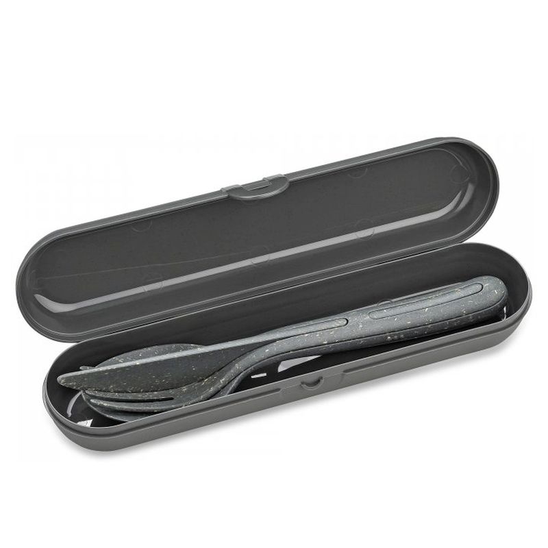 Κουτάλι, Μαχαίρι, Πιρούνι & Θήκη από Οργανικό Υλικό - Ash Rey (4τμχ.) - Koziol Klikk Ready