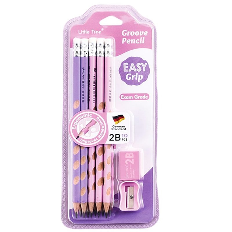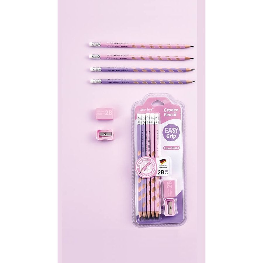 Σετ μολυβιών με σβήστρα - Pink Groove Pencil (12τμχ./2Β) - Little Tree
