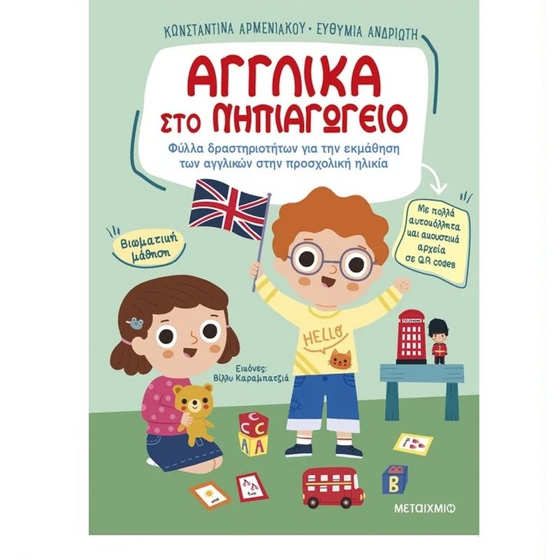 Το κατάλληλο υλικό για βιωματική μάθηση και τα πρώτα βήματα στην κατάκτηση της αγγλικής γλώσσας από τα μικρά παιδιά. Με βάση τις οδηγίες του Υπουργείου για την εισαγωγή της αγγλικής γλώσσας στο Νηπιαγωγείο.