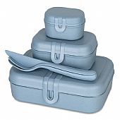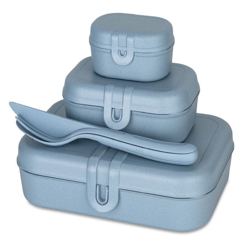 Το σετ μεσημεριανού γεύματος PASCAL READY έχει όλα όσα χρειάζεστε για ένα υγιεινό γεύμα στο δρόμο ή και στο γραφείο. Σαλάτες και dressing, λαχανικά και ντιπ, σάντουιτς και φρούτα διατηρούνται τακτοποιημένα χάρη στο extra μεγάλο φαγητοδοχείο Pascal, το δεύτερο pascal small στεγανό δοχείο που εξασφαλίζει ότι τα τρόφιμα παραμένουν νόστιμα μέχρι να τα καταναλώσετε και το 3 pascal mini. Περιέχει επίσης ένα σετ μαχαιροπίρουνα KLIKK, ολοκληρώνοντας τέλεια το σετ για το μεσημεριανό γεύμα.