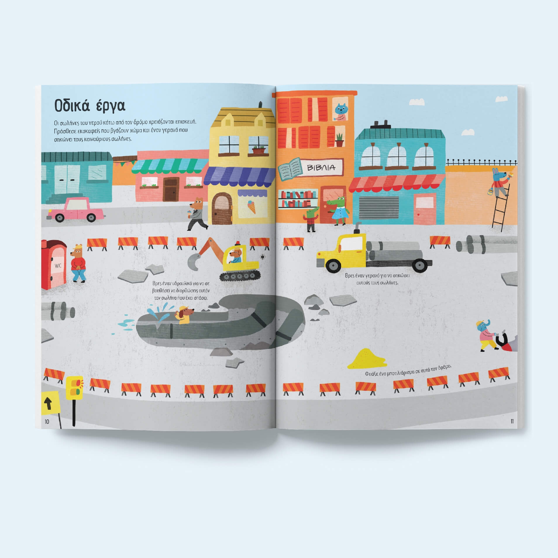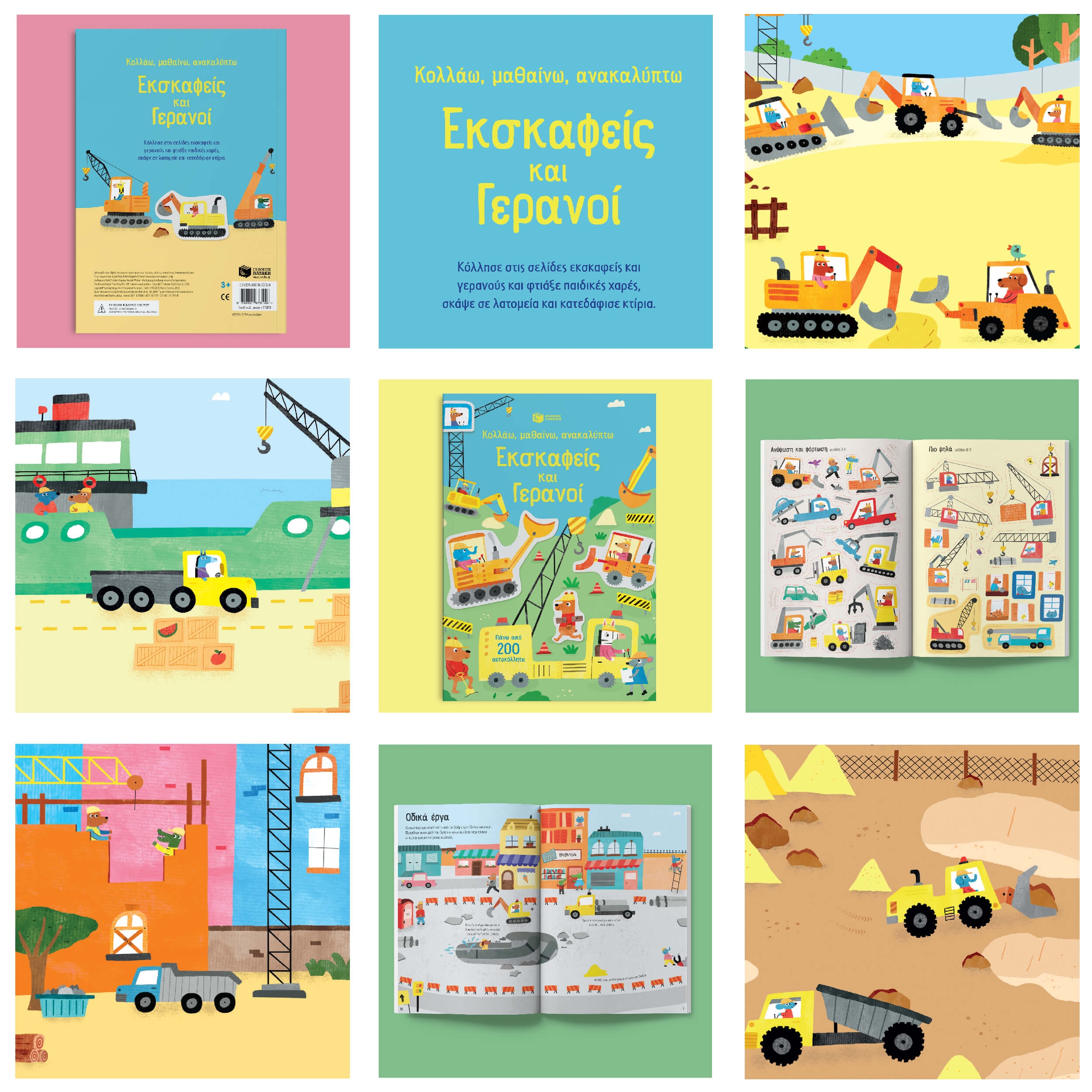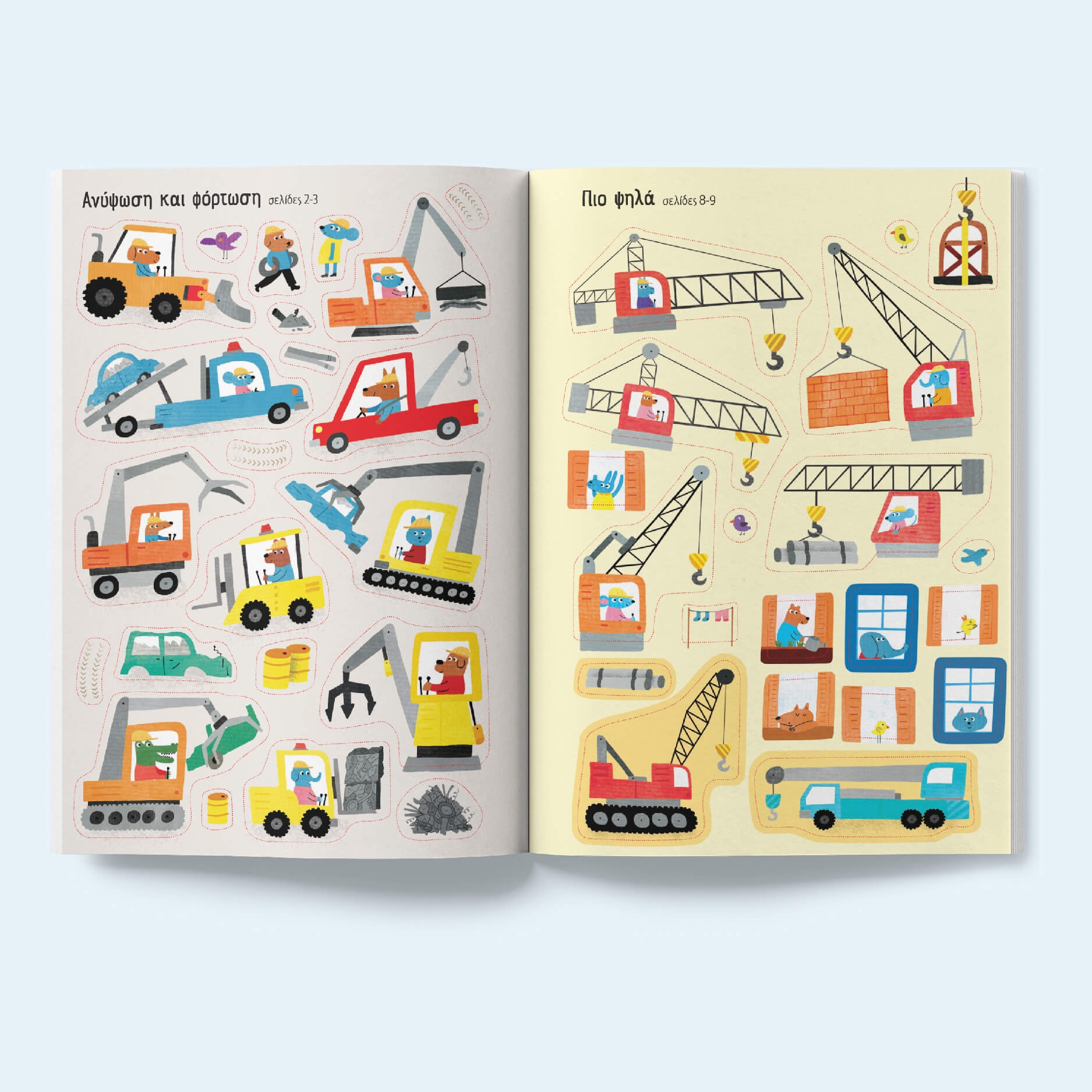 Κόλλησε στις σελίδες εκσκαφείς και γερανούς και φτιάξε παιδικές χαρές, σκάψε σε λατομεία και κατεδάφισε κτίρια.
