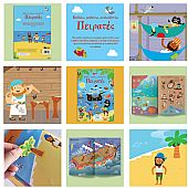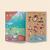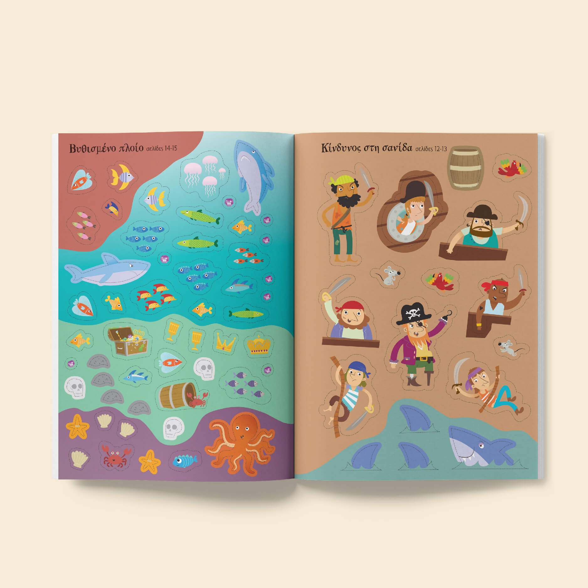 Μια μεγάλη περιπέτεια σε περιμένει μόλις ανοίξεις αυτό το βιβλίο: καταιγίδες, ναυμαχίες, το κυνήγι του θησαυρού…Βρες τα αυτοκόλλητα και κόλλησέ τα σε κάθε στάδιο του ταξιδιού.