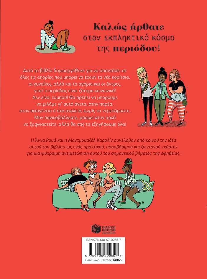 Καλώς ήρθατε στον εκπληκτικό κόσμο της περιόδου! Αυτό το βιβλίο δημιουργήθηκε για να απαντήσει σε όλες τις απορίες που μπορεί να έχουν τα νέα κορίτσια, οι γυναίκες, αλλά και τα αγόρια και οι άντρες, γιατί η περίοδος είναι ζήτημα κοινωνικό! Δεν είναι ταμπού! Θα πρέπει να μπορούμε να μιλάμε γι’ αυτό άνετα, στην παρέα, την οικογένεια ή το σχολείο, χωρίς να ντρεπόμαστε. Μην πανικοβάλλεστε, μπορεί στην αρχή να ξαφνιαστείτε, αλλά θα σας τα εξηγήσουμε όλα! Η Άννα Ρουά και η Μαντμουαζέλ Καρολίν συνέλαβαν από κοινού την ιδέα αυτού του βιβλίου ως ενός πρακτικού, προσβάσιμου και ζωντανού «χάρτη» για μια ψύχραιμη αντιμετώπιση αυτού του σημαντικού βήματος της εφηβείας.