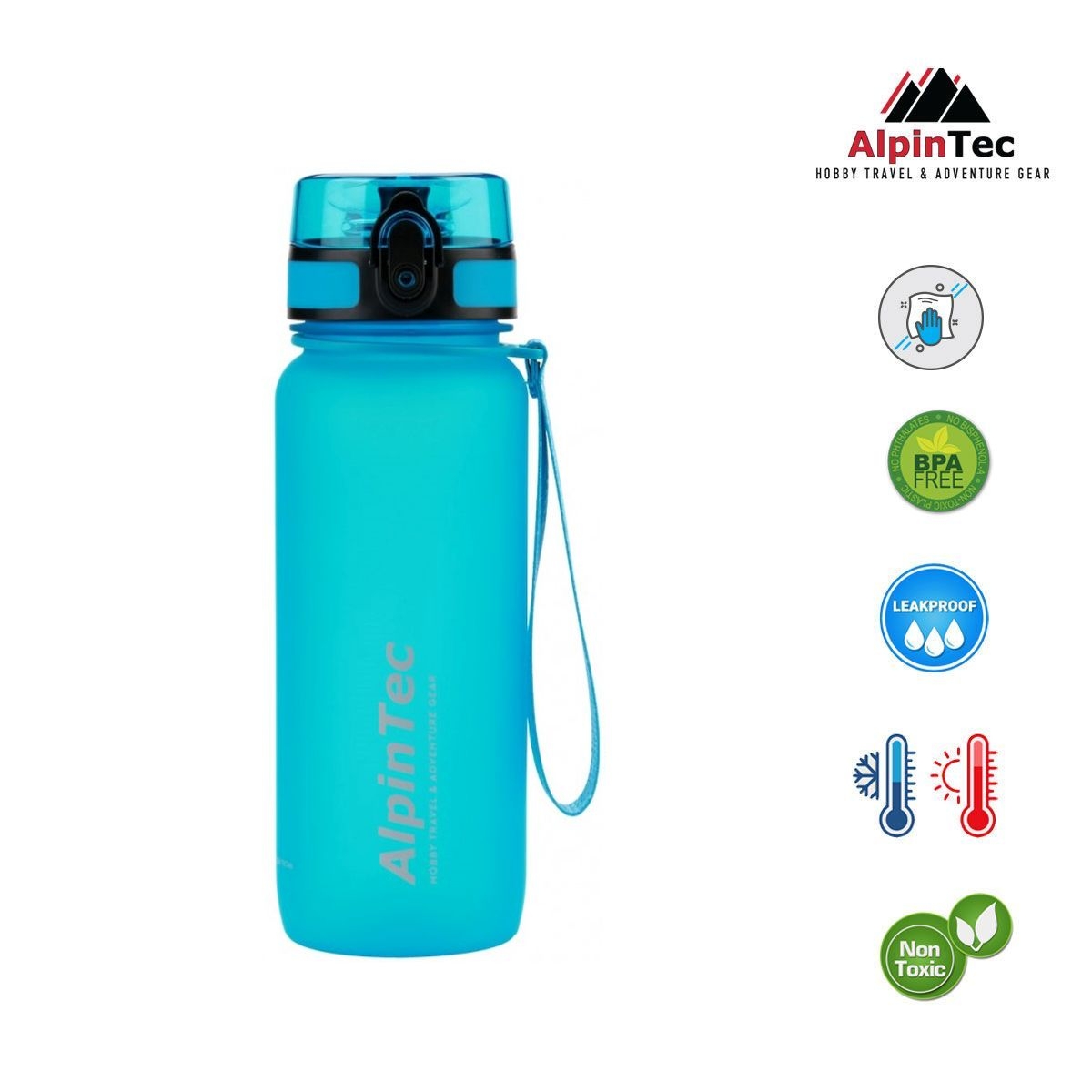 -Κατασκευασμένα με νέας γενιάς συμπολυεστέρα Tritan, τα παγούρια της AlpinTec είναι ασφαλή στη χρήση. Σε αντίθεση με τα πλαστικά υλικά που χρησιμοποιούνται στα συνηθισμένα παγούρια, το υλικό Τritan είναι απαλλαγμένο από δισφαινόλη Α (BPA), δισφαινόλη S (BPS), οιστρογονική δραστηριότητα (ΕΑ) και ανδρογονική δραστηριότητα (ΑΑ).