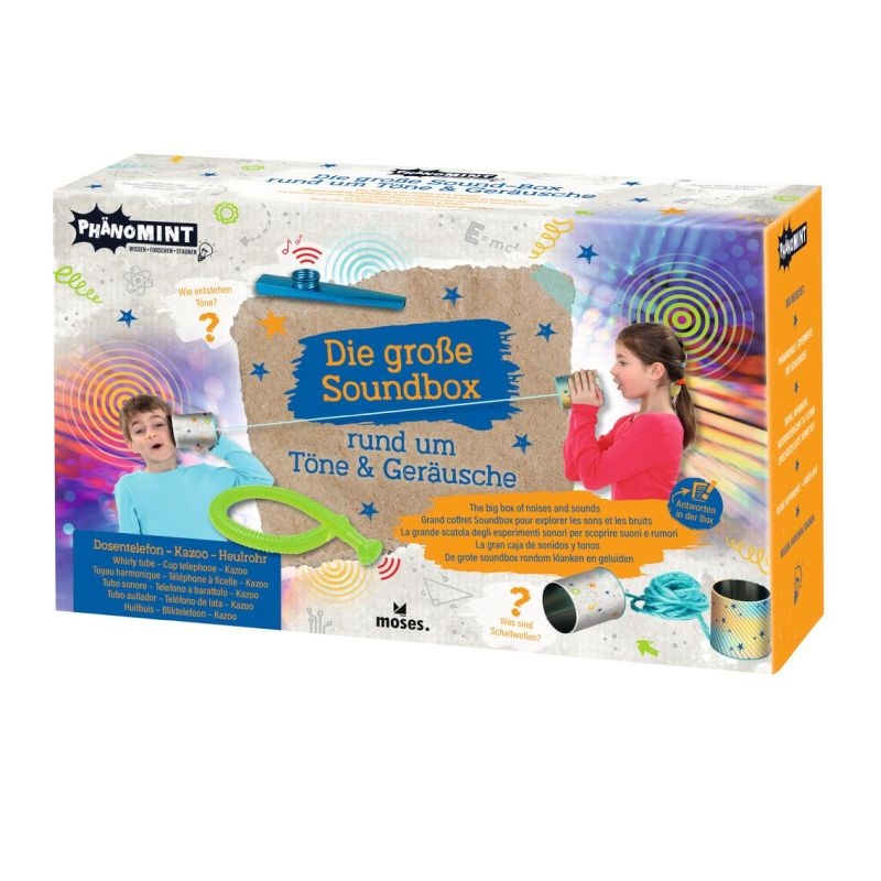 Πώς δημιουργούνται οι θόρυβοι; Τι είναι τα ηχητικά κύματα; Και πώς αντιλαμβάνονται τα αυτιά και ο εγκέφαλος τη μουσική; Οι απαντήσεις σε αυτές και πολλές άλλες ερωτήσεις καθώς και πολλές θεαματικές ανακαλύψεις σχετικά με τους ήχους και τους θορύβους περιμένουν τα περίεργα παιδιά να τα ανακαλύψουν στο κουτί για τους ήχους και τους θορύβους! Με τα ακουστικά παιχνίδια που περιλαμβάνονται, όπως ένα kazoo, ένα σωλήνα που μεταφέρει τον ήχο ή ένα κιτ για το δικό σας κονσερβοποιημένο τηλέφωνο, μπορείτε να πραγματοποιήσετε πολλά κόλπα και συναρπαστικά πειράματα που εξασφαλίζουν διασκέδαση και μεταφορά γνώσης. Επιπλέον, εξηγείται με φιλικό προς τα παιδιά τρόπο τι κρύβεται πίσω από το επιστημονικό φαινόμενο των ηχητικών κυμάτων. Το τέλειο δώρο για περίεργα παιδιά που ενδιαφέρονται για την επιστήμη!