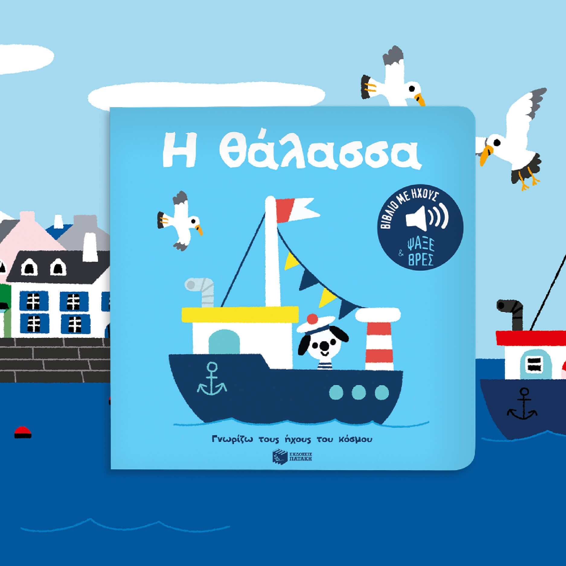 Το τέλειο βιβλίο για να ανακαλύψουν τα παιδιά το ηχητικό περιβάλλον της θάλασσας. Οι ήχοι, προσεκτικά επιλεγμένοι, εμπλουτίζουν κάθε σκηνή και την κάνουν ακόμα πιο ζωντανή, βυθίζοντας το παιδί σε ένα θαλάσσιο περιβάλλον, σαν να ήταν εκεί. Και στο τέλος, ένα παιχνίδι αναζήτησης και εύρεσης ήχου με ένα κουμπί-έκληξη! Το παιδί πατάει το κουμπί και δείχνει την εικόνα που ακούει. Πατάει ξανά και ψάχνει σε ποια εικόνα αντιστοιχεί ο νέος ήχος και αυτό, όσες φορές θέλει! Εδώ και χρόνια οι Εκδόσεις Πατάκη πρωτοπορούν στην κατηγορία των ηχητικών βιβλίων με μια μεγάλη συλλογή διαλεγμένη με φροντίδα για τα πρώτα βήματα των παιδιών σας στο διάβασμα και στη μουσική. Βιβλία που βοηθούν τα παιδιά να ξεδιπλώσουν τα συναισθήματα αλλά και τα ταλέντα τους.