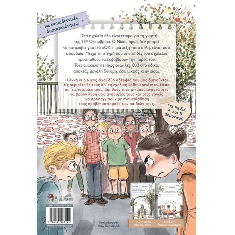 Στο σχολείο όλα είναι έτοιμα για τη γιορτή της 28ης Οκτωβρίου. Ο Νίκος όμως δεν μπορεί να καταλάβει γιατί το «ΟΧΙ», μια λέξη τόσο απλή, είναι τόσο σπουδαία.