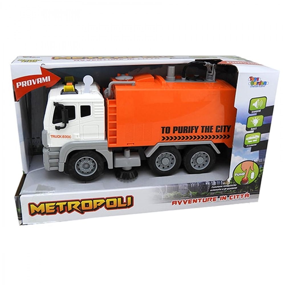 Όχημα Καθαρισμού Πορτοκαλί με Μάνικα 1:12 (Με ήχο, Φως, Pump Λειτουργία & Κίνηση μέσω Τριβής) - Metropoli
