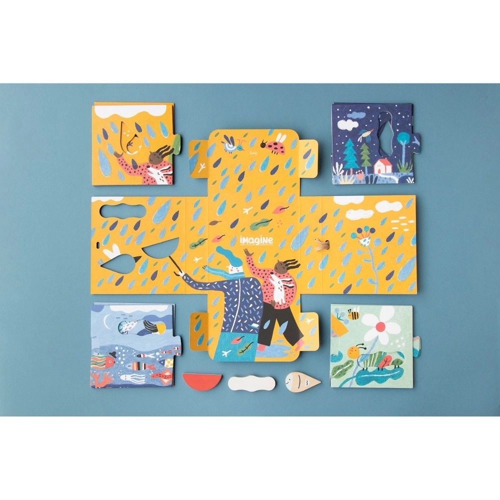 Πρόκειται για το φεγγάρι; Ή μήπως είναι ένα πλοίο; Το υπέροχο «Imagine» της αγαπημένης μας εταιρείας Londji, είναι το ιδανικό παιχνίδι για να διεγείρει τη δημιουργική σκέψη των παιδιών! Οι πανέμορφες εικονογραφήσεις, ολοκληρώνονται τοποθετώντας τα ξύλινα κομμάτια σε αυτές και αναδεικνύουν τέσσερα μαγευτικά τοπία. Αφήστε τη φαντασία σας ελεύθερη και σκαρφιστείτε τις πιο μαγευτικές ιστορίες καθώς παίζεται.