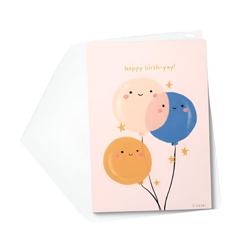 Χειροποίητη ευχετήρια κάρτα με Φάκελο - Happy Birth-yay! (Μπαλόνια/11x15.5) - J.o. Creations
