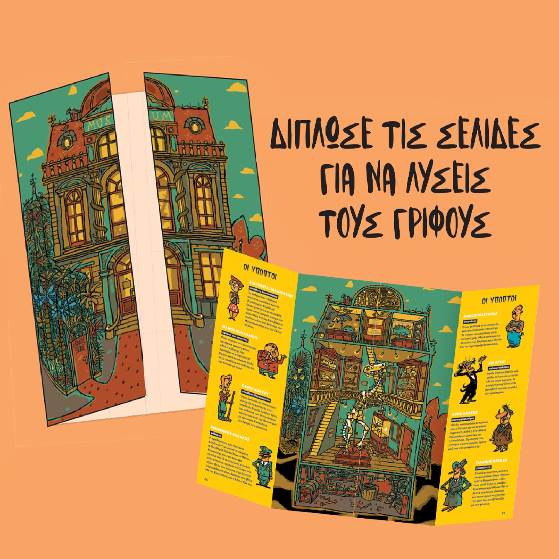 Ένα διασκεδαστικό βιβλιοπαιχνίδι που περιλαμβάνει 17 μυστήρια σε 17 ευφάνταστα περιβάλλοντα, τα οποία καλείται να λύσει ο αναγνώστης-ντετέκτιβ. Παρατήρησε προσεκτικά την εξωτερική όψη του κάθε κτιρίου, διάβασε τις δηλώσεις των θυμάτων, των μαρτύρων και των υπόπτων, δίπλωσε τις σελίδες, ώστε να ερευνήσεις και το εσωτερικό του κάθε κτιρίου, κι έπειτα λύσε τον γρίφο συνδυάζοντας τις ενδείξεις που σου παρέχονται με σκοπό να ολοκληρώσεις την έρευνά σου, να διαλευκάνεις το μυστήριο και να βρεις τους ενόχους! Το μόνο που χρειάζεσαι είναι παρατηρητικότητα και συνδυαστική ικανότητα, ώστε κανένας ένοχος να μη μείνει ατιμώρητος! Ένα πρωτότυπο βιβλιοπαιχνίδι για πολλές ώρες διασκέδασης.