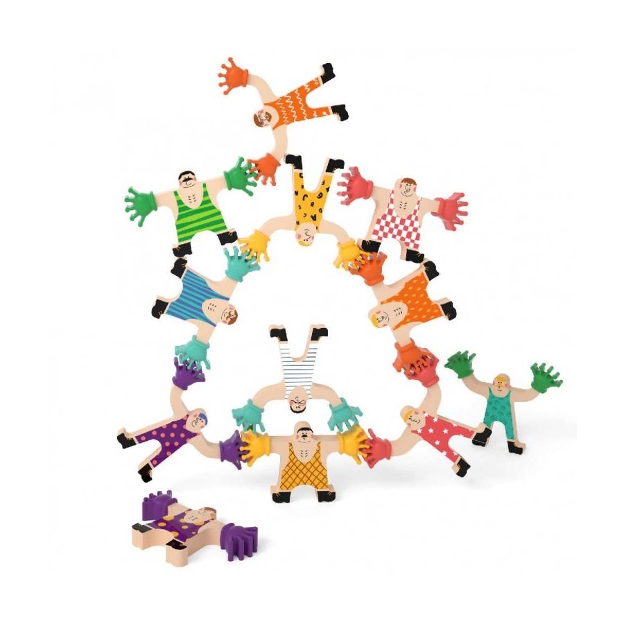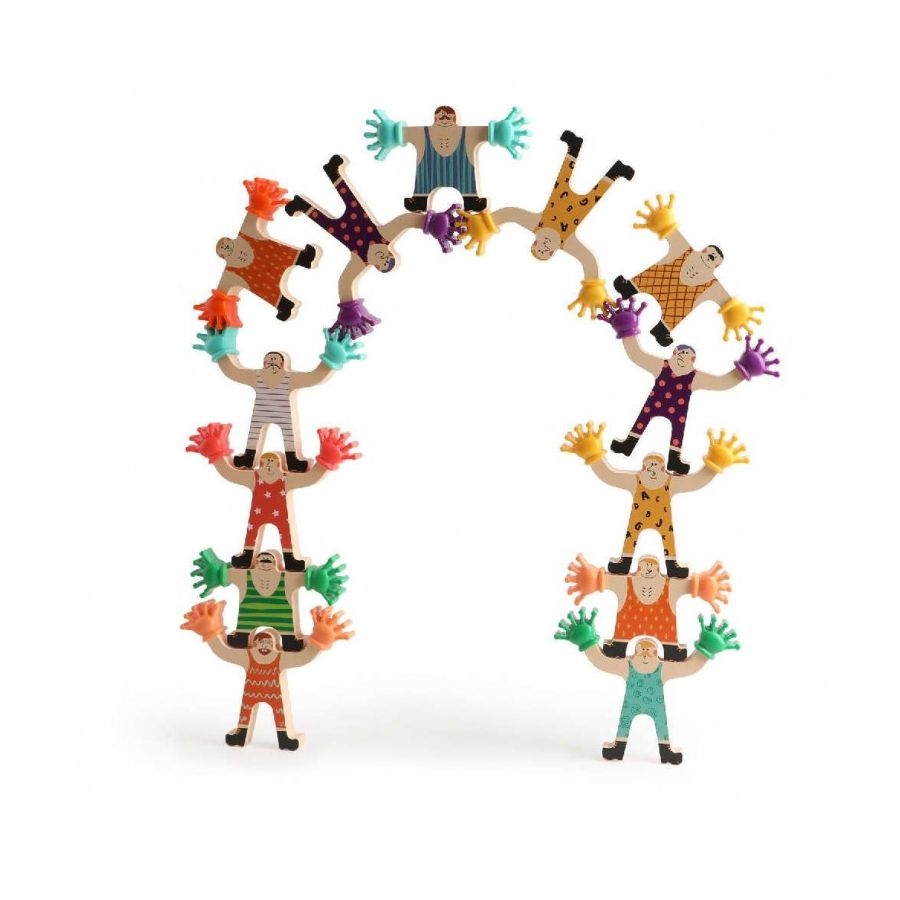Αυτό το διασκεδαστικό εκπαιδευτικό παιχνίδι ισορροπίας απαιτεί δεξιότητες και σταθερά χέρια. Τα παιδιά πρέπει να σκεφτούν δημιουργικά και να εξασκηθούν στην προσέγγιση ενός προβλήματος με τρόπο προσανατολισμένο στη λύση, ώστε να φτιάξουν σωστά έναν πύργο ή να στοιβάξουν τις φιγούρες. Οι ξύλινες φιγούρες είναι εύκολα διαχειρίσιμες από τα μικρά παιδιά, ενώ οι υπέροχες εικονογραφήσεις διεγείρουν τη φαντασία τους. Ένα παιχνίδι που εκπαιδεύει τις λεπτές κινητικές τους δεξιότητες και τον συντονισμό χεριού-ματιού καθώς τα παιδιά έρχονται σε επαφή με τα θέματα της ισορροπίας και της ισορροπίας με παιχνιδιάρικο τρόπο και εξασκούν υπομονή και συγκέντρωση.