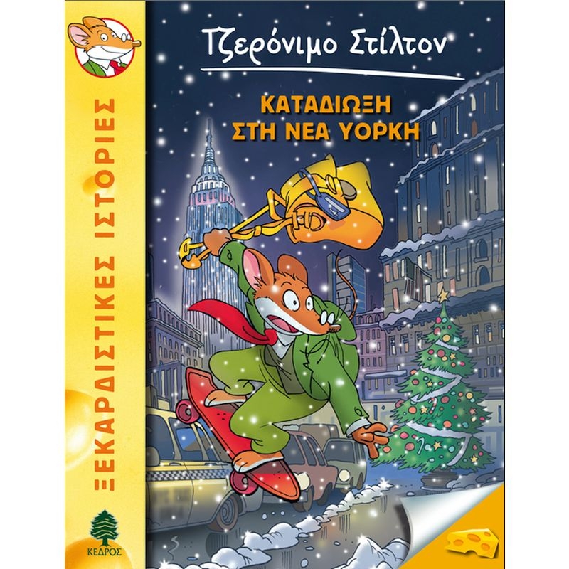 Αγαπητά μου τρωκτικά, Εδώ στην Ποντικόνησο, όλα τα βιβλία μου έχουν γίνει μπεστ σέλερ. Πρόκειται για ξεκαρδιστικές περιπέτειες, πιο τρυφερές από τη φέτα , πιο νόστιμες από τη γραβιέρα και πιο αρωματικές από την παρμεζάνα… Είναι ιστορίες που θα σας μείνουν αξέχαστες, σας το εγγυώμαι εγώ, ο Τζερόνιμο Στίλτον. «Τι Χριστούγεννα κι αυτά! Ο παππούς Τορκουάτο αποφάσισε να περάσουμε τις γιορτές όλοι μαζί στη Νέα Υόρκη, κοντά στον φίλο του, τον Κλοντάικ Μακάρουρ. Ποιος ξέρει γιατί, αφού τα Χριστούγεννα είναι τόσο ωραία στην Ποντικούπολη! Ακολούθησα απρόθυμα και… έζησα μια πραγματική περιπέτεια προσπαθώντας να εντοπίσω μια μυστηριώδη κυρία στους δρόμους της Νέας Υόρκης!».