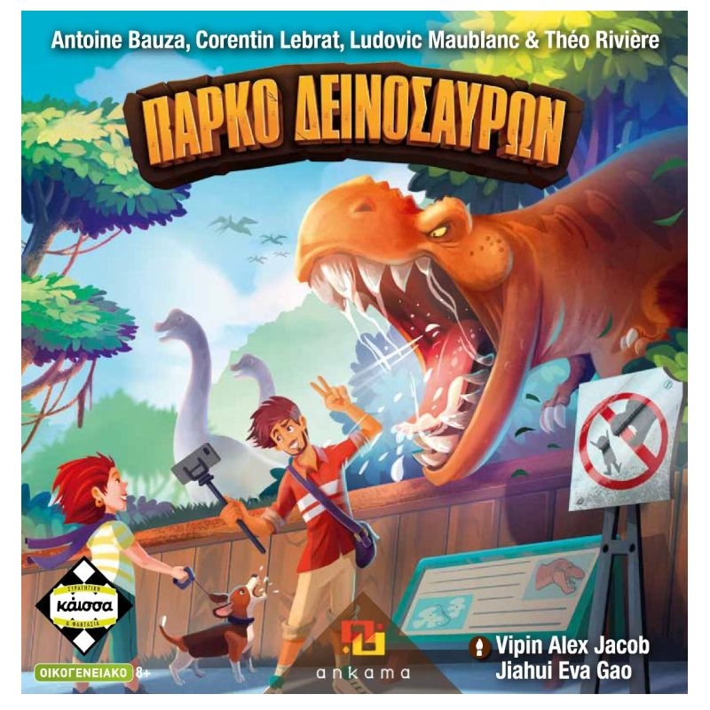 Περιεχόμενα: 5 ταμπλό Πάρκων, 60 δεινόσαυροι, 1 ζάρι, 1 σακούλι, κανόνες.