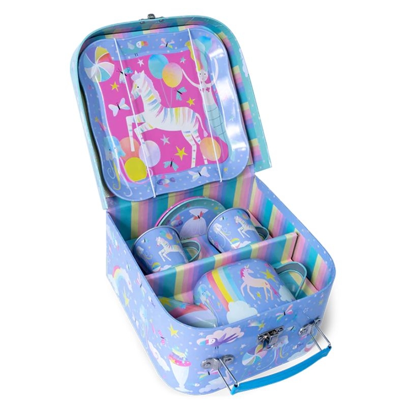 Ένα εντυπωσιακό μεταλλικό σερβίτσιο τσαγιού σε υπέροχο βαλιτσάκι με θέμα ένα ''Ονειρεμένο Τοπίο". Πιείτε ένα γρήγορο τσάι με τους καλύτερους φίλους σας από αυτά τα διασκεδαστικά φλιτζάνια τσαγιού! Το παιδί ξεκινά να αναπτύσσει την φαντασία του και να καλλιεργεί τις κοινωνικές και επικοινωνιακές δεξιότητές του. Ταυτόχρονα παίρνοντας ρόλους και κάνοντας διαλόγους που καλείται να αντιμετωπίσει το ίδιο μαθαίνει την έννοια του σεβασμού, της ευγένειας καθώς και της προσφοράς. Μια ξεχωριστή ιδέα δώρου!