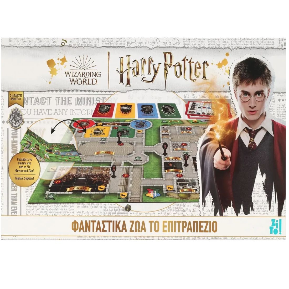 Μαγικά πλάσματα κυκλοφορούν ελεύθερα στο Χόγκουαρτς. Αυτό σημαίνει ότι εσύ και μέχρι τρεις ακόμα φίλοι σου πρέπει να τους σώσετε όλους, αιχμαλωτίζοντας αυτά τα φανταστικά ζώα, που είναι εκτός ελέγχου! Σε αυτό το γεμάτο δράση παιχνίδι παίρνετε τον ρόλο του Χάρι Πότερ, του Ρον Ουέσλι, της Ερμιόνη Γκρείντζερ, ή της Τζίνι Ουέσλι. Συλλέξτε στοιχεία για να εντοπίσετε πλάσματα τόσο μέσα όσο και έξω από το Χόγκουαρτς! Προσέξτε όμως: η μετακίνηση γύρω από το Χόγκουαρτς μπορεί να είναι επικίνδυνη και να σας κοστίσει στοιχεία και πολύτιμο χρόνο. Το ειδικό ταμπλό που αλλάζει, απογειώνει τον ενθουσιασμό, οδηγώντας σε ατέλειωτες ώρες διασκέδασης. Εξερευνήστε τους μαγικούς χώρους του ξακουστού σχολείου για να βρείτε τα χαμένα ζώα. Το παιχνίδι διαθέτει δυνατότητα εναλλαγής ταμπλό, που επιτρέπει στους παίκτες να μετακινούνται ανάμεσα σε δύο ξεχωριστούς χώρους κατά τη διάρκεια του παιχνιδιού!