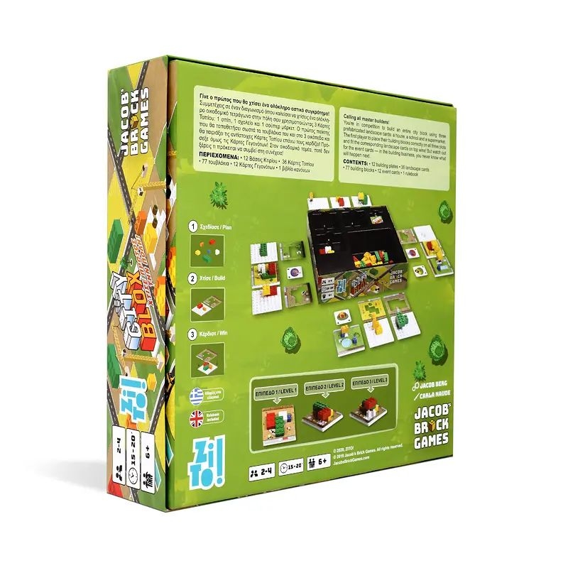 Συμμετέχεις σε έναν διαγωνισμό όπου καλείσαι να χτίσεις ένα ολόκληρο οικοδομικό τετράγωνο στην πόλη σου χρησιμοποιώντας 3 Κάρτες Τοπίου: 1 σπίτι, 1 σχολείο και 1 σούπερ μάρκετ. Ο πρώτος παίκτης που θα τοποθετήσει σωστά τα τουβλάκια του και στα 3 οικόπεδα και θα ταιριάξει τις αντίστοιχες Κάρτες Τοπίου επάνω τους κερδίζει! Πρόσεξε όμως τις Κάρτες Γεγονότων! Στον οικοδομικό τομέα, ποτέ δεν ξέρεις τι πρόκειται να συμβεί στη συνέχεια!