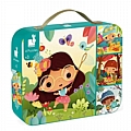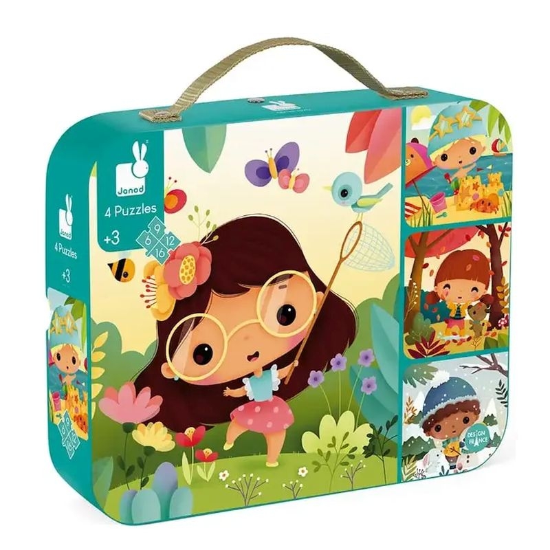 Ένα Βαλιτσάκι που περιλαμβάνει 4 puzzles με θέμα τις 4 εποχές αυξανόμενης δυσκολίας, με 6, 9, 12 και 16 κομμάτια αντίστοιχα. Ξεκινώντας από το ευκολότερο και δουλεύοντας προς το δυσκολότερο, τα παιδιά θα εξασκήσουν τη λογική σκέψη και την παρατηρητικότητά τους με το πιο διασκεδαστικό τρόπο! Τα μεγάλα κομμάτια των παζλ, είναι ειδικά σχεδιασμένα ώστε να είναι εύχρηστα από τα μικρά χεράκια τους.