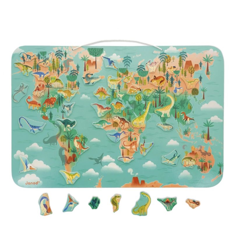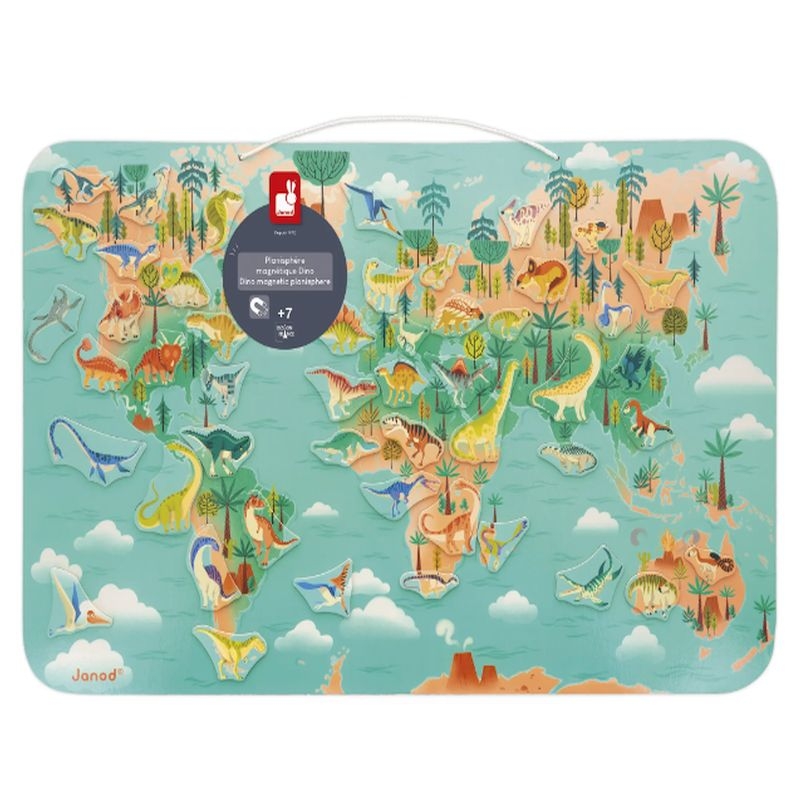 Όλα έτοιμα για άφθονο παιχνίδι με το μαγνητικό πλανησφαίριο των δεινόσαυρων! Το παιδί σας θα διασκεδάσει τοποθετώντας τα διάφορα μαγνητάκια, όπως τον περίφημο Τυραννόσαυρο, αλλά και τον Τρικεράτωπα, τον Στεγόσαυρο, τον Πτερανόδοντα ή τον Πτεροδάκτυλο… Πάνω στο πλανησφαίριο υπάρχουν σκιές που θα διευκολύνουν το παιδί να τοποθετήσει τα 50 μαγνητάκια στα σωστά σημεία. Περιλαμβάνεται επίσης αφίσα που βοηθά το παιδί να βρει τη σωστή θέση και να μάθει το όνομα κάθε δεινόσαυρου. Το παιδί σας θα μπορεί να αναπτύξει τις γνώσεις του, ενώ παράλληλα διασκεδάζει. Παιχνίδι για τα πρώτα χρόνια του παιδιού, κατασκευασμένο από ξύλο πιστοποιημένο από το Συμβούλιο Διαχείρισης των Δασών (FSCTM).