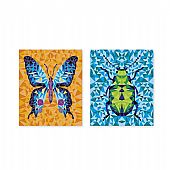 Ετοιμαστείτε να δείτε πεταλούδες να εμφανίζονται μπροστά στα μάτια της! Αυτό το δημιουργικό σετ σάς επιτρέπει να δημιουργήσετε 2 εικόνες χρησιμοποιώντας την τεχνική χρωμάτων με αριθμούς. Θα δείτε μία όμορφη πεταλούδα και ένα σκαθάρι! Περιλαμβάνει επίσης ένα πλαίσιο, το οποίο μπορείτε να ζωγραφίσετε όπως θέλετε για να ταιριάζει με τις εικόνες σας. Το σετ περιλαμβάνει ακόμα 1 παλέτα με 15 νερομπογιές, 1 σπόγγο, καθώς και 1 πινέλο με δοχείο νερού, που συμβάλλουν στην πρωτοτυπία της δραστηριότητας. Ένα επεξηγηματικό φυλλάδιο αναφέρει την αντιστοιχία χρωμάτων και αριθμών. Κάθε περιοχή αντιπροσωπεύει ένα τρίγωνο, που σημαίνει ότι όταν ξεκινάτε τη δραστηριότητα, δεν ξέρετε τι θα εμφανιστεί όταν ολοκληρωθεί η εικόνα. Μία από τις δύο ζωγραφιές έχει γυαλιστερό εφέ για ακόμα πιο θεαματικό αποτέλεσμα. Αυτή η δραστηριότητα βοηθά το παιδί να αναπτύξει τις λεπτές κινητικές δεξιότητες και την υπομονή του, και διαρκεί περίπου 6 ώρες