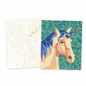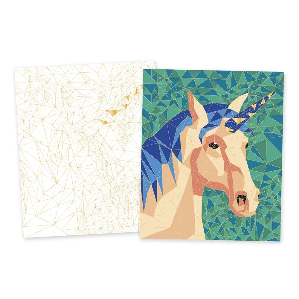 Ο μυστηριώδης κόσμος των φανταστικών πλασμάτων αποκαλύπτεται σε αυτές τις ζωγραφιές που είναι γεμάτες εκπλήξεις! Αυτό το δημιουργικό κιτ σάς επιτρέπει να δημιουργήσετε 2 εικόνες χρησιμοποιώντας την τεχνική χρωμάτων με αριθμούς. Περιλαμβάνει επίσης ένα πλαίσιο, το οποίο μπορείτε να ζωγραφίσετε όπως θέλετε για να ταιριάζει με τις εικόνες σας. Το σετ περιλαμβάνει ακόμα 1 παλέτα με 15 νερομπογιές, 1 σπόγγο, καθώς και 1 πινέλο με δοχείο νερού, που συμβάλλουν στην πρωτοτυπία της δραστηριότητας. Ένα επεξηγηματικό φυλλάδιο αναφέρει την αντιστοιχία χρωμάτων και αριθμών. Κάθε περιοχή αντιπροσωπεύει ένα τρίγωνο, που σημαίνει ότι όταν ξεκινάτε τη δραστηριότητα, δεν ξέρετε τι θα εμφανιστεί όταν ολοκληρωθεί η εικόνα. Μία από τις δύο ζωγραφιές έχει γυαλιστερό εφέ για ακόμα πιο θεαματικό αποτέλεσμα. Αυτή η δραστηριότητα βοηθά το παιδί να αναπτύξει τις λεπτές κινητικές δεξιότητες και την υπομονή του, και διαρκεί περίπου 6 ώρες.