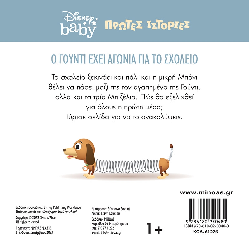 Το σχολείο ξεκινάει και πάλι και η μικρή Μπόνι θέλει να πάρει μαζί της τον αγαπημένο της Γούντι, αλλά και τα τρία Μπιζέλια. Πώς θα εξελιχθεί για όλους η πρώτη μέρα; Γύρισε σελίδα για να το ανακαλύψεις!