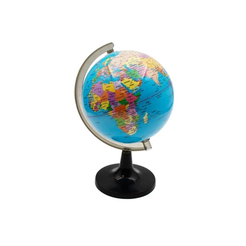 Υδρόγειος σφαίρα, διαμέτρου 14.2cm, κατάλληλη για το σχολείο, το σπίτι και το γραφείο! Ο γεωγραφικός της χάρτης μας δείχνει σύνορα, ωκεανούς, χώρες του κόσμου, πρωτεύουσες και άλλες μεγάλες πόλεις, με τίτλους στα Ελληνικά.