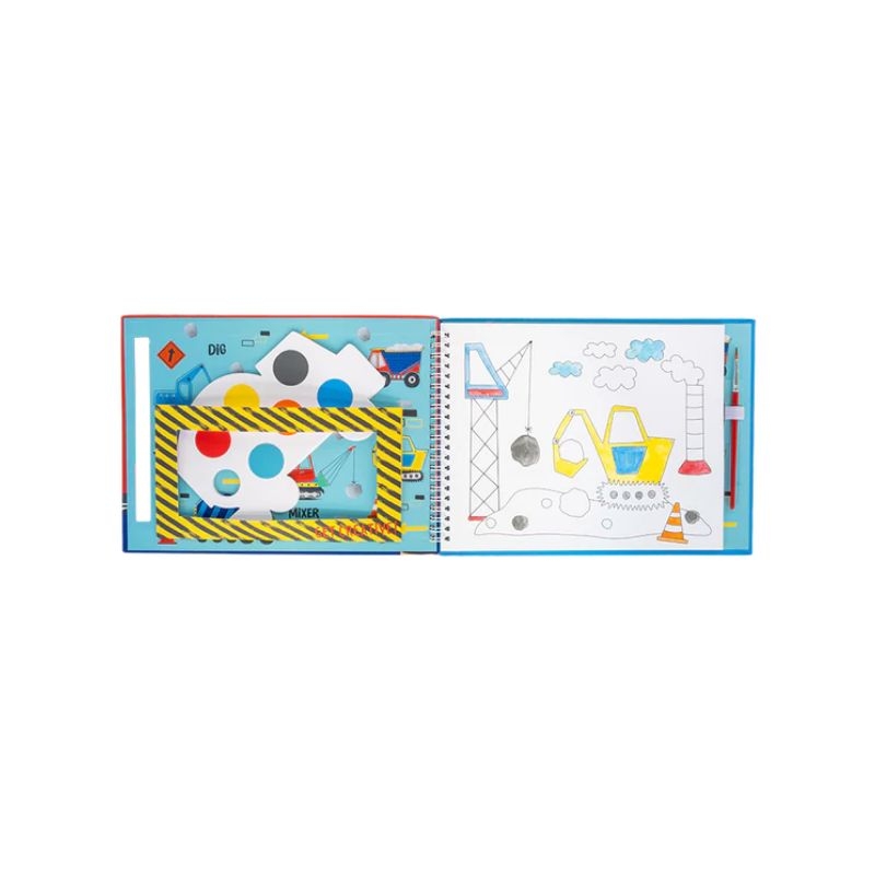 Σπιράλ βιβλιαράκι που περιλαμβάνει 8 μεμονωμένες παλέτες χρωμάτων σε σχήμα φορτηγού, 8 υπέροχες εικόνες και ένα πινέλο. Απλώς προσθέστε μια μικρή ποσότητα νερού στο πινέλο σας, περάστε το χρώμα της βαφής στην παλέτα και μετά ζωγραφίστε το αριστούργημα σας! Οι παλέτες χρωμάτων και το πινέλο αποθηκεύονται με ασφάλεια μέσα στον ειδικά διαμορφωμένο χώρο του βιβλίου όταν δεν χρησιμοποιούνται, καθιστώντας το ιδανικό για βαφή εν κινήσει!