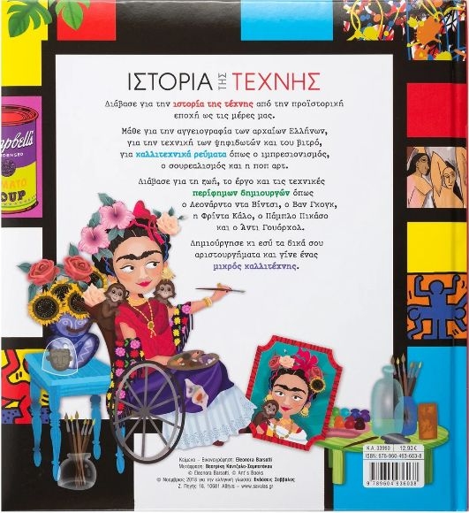 Διάβασε για την ιστορία της τέχνης από την προϊστορική εποχή ως τις μέρες μας. Μάθε για την αγγειογραφία των αρχαίων Ελλήνων, για την τεχνική των ψηφιδωτών και του βιτρό, για καλλιτεχνικά ρεύματα όπως ο ιμπρεσιονισμός, ο σουρεαλισμός και η ποπ αρτ. Διάβασε για τη ζωή, το έργο και τις τεχνικές περίφημων δημιουργών όπως ο Λεονάρντο ντα Βίντσι, ο Βαν Γκογκ, η Φρίντα Κάλο, ο Πάμπλο Πικάσο και ο Άντι Γουόρχολ. Δημιούργησε κι εσύ τα δικά σου αριστουργήματα και γίνε ένας μικρός καλλιτέχνης.