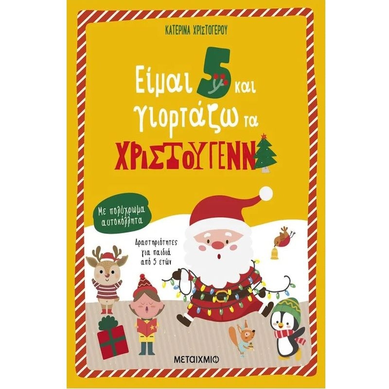 Ήρθαν τα Χριστούγεννα και η Πρωτοχρονιά! Ακολούθησε τον Αϊ-Βασίλη, τα ξωτικά και τους άλλους ήρωες του βιβλίου σε ένα ευχάριστο ταξίδι στον κόσμο της γνώσης και της δημιουργίας. Μέσα από επιλεγμένες δραστηριότητες και κατασκευές, θα παίξεις με τα χρώματα, τα σχήµατα και τους αριθµούς (1-10), θα ζωγραφίσεις, θα ασκήσεις την παρατηρητικότητά σου και θα καλλιεργήσεις τη φαντασία σου. Ευχάριστες δραστηριότητες για να απολαύσει κάθε παιδί χαρούμενες και δημιουργικές ώρες τη γιορτινή περίοδο. Ένα ελκυστικό βιβλίο με αστεία εικονογράφηση που βοηθάει το παιδί να ασκήσει δεξιότητες συγκέντρωσης, οπτικο-κινητικού συντονισμού, πρώτης γραφής, πρώτης ανάγνωσης, μαθηματικών, προσανατολισμού στον χώρο κ.ά. Με πολύχρωμα αυτοκόλλητα και ιδέες για κατασκευές!