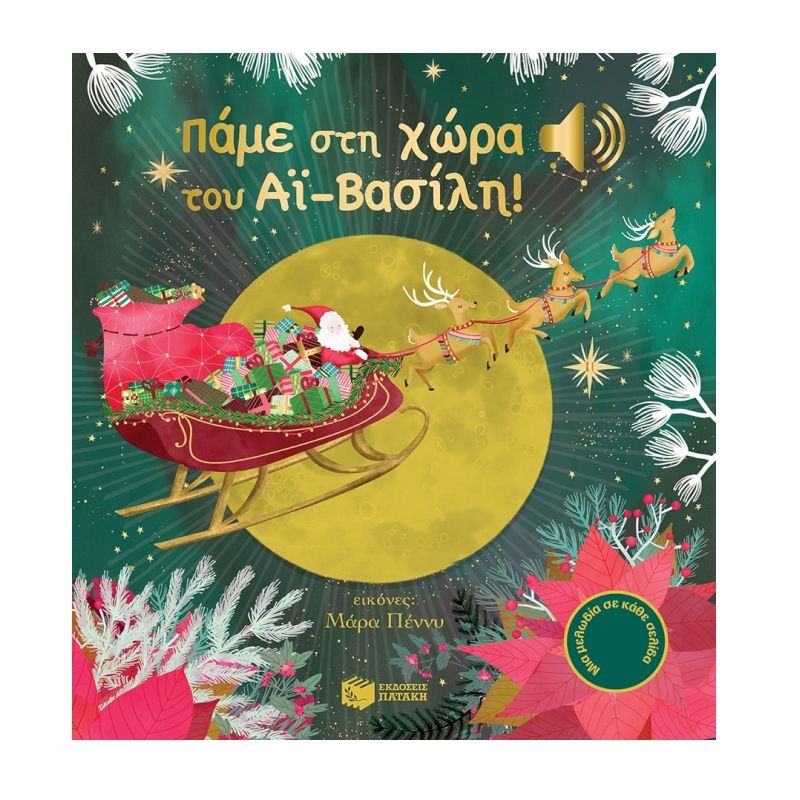 Πάτησε το κουμπί και άκουσε τις μουσικές που συνοδεύουν μια βόλτα στη χώρα του Αϊ-Βασίλη. Μια πετυχημένη σειρά που χαρίζει στιγμές χαράς στα μικρά παιδιά με αυθεντικούς ήχους και όμορφη εικονογράφηση, ενθαρρύνοντάς τα να ανακαλύψουν ήχους και μουσικές απ’ όλο τον κόσμο. Εδώ και χρόνια οι Εκδόσεις Πατάκη πρωτοπορούν στην κατηγορία των ηχητικών βιβλίων με μια μεγάλη συλλογή διαλεγμένη με φροντίδα για τα πρώτα βήματα των παιδιών σας στο διάβασμα και στη μουσική. Βιβλία που βοηθούν τα παιδιά να ξεδιπλώσουν τα συναισθήματα αλλά και τα ταλέντα τους.