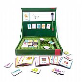Περιλαμβάνει: 25 μαγνητικές κάρτες διπλής όψης, 80 μαγνητικά γράμματα υψηλής ανθεκτικότητας, μαγνητικό πίνακα με γραμμές και ένα μαρκαδόρο «γράψε – σβήσε» με σφουγγάρι.