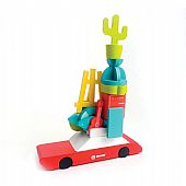 Περιλαμβάνονται: 24 ξύλινα αντικείμενα και ένα ζάρι με διάφορα χρώματα, 1 βάση στήριξης-αυτοκινητάκι καθώς και οδηγίες.