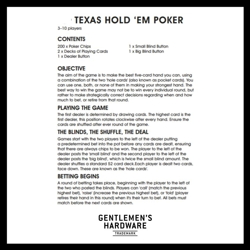 Περιλαμβάνει οδηγίες για το Pontoon, Texas Hold ‘Em Πόκερ και Ρουλέτα.