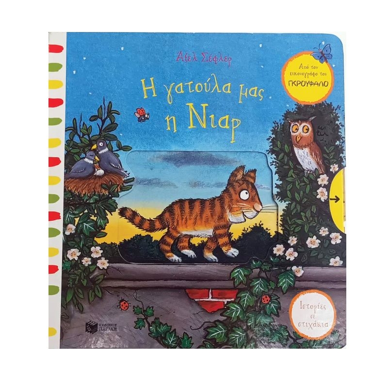 Τα μικρά παιδιά θα λατρέψουν να παίξουν με το βιβλίο αυτό σύροντας και τραβώντας τις εικόνες. Μια διασκεδαστική ιστορία με στιχάκια, αποκλειστικά για μικρούς αναγνώστες, για την όμορφη γατούλα Νιαρ.