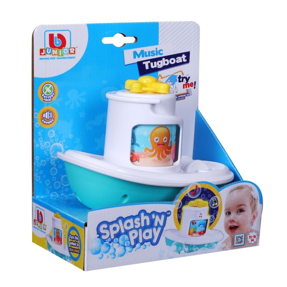 Το Splash N Play Music Tugboat είναι ένα διασκεδαστικό και διαδραστικό παιχνίδι μπάνιου για να προσφέρουν έντονο παιχνίδι και ατελείωτη διασκέδαση ακόμη και σε περιορισμένους χώρους, το συγκεκριμένο σκαφάκι είναι αδιάβροχο και θα παίζει μουσική όταν ο μοχλός στρίβει στην κορυφή. Έχουν εκπαιδευτικό χαρακτήρα, μιας και βοηθούν το παιδί να εξασκήσει τις κινητικές του δεξιότητες ενώ παράλληλα, χάρη στα έντονά τους χρώματα, διεγείρουν τις οπτικές του αισθήσεις, κρατώντας το απασχολημένο κατά τη διάρκεια του μπάνιου. Τέλος, επιδρούν θετικά και στην ψυχολογία του παιδιού, καθώς το βοηθούν να εξοικειωθεί με το νερό και να βλέπει την ώρα του μπάνιου ως μία ευχάριστη διαδικασία.
