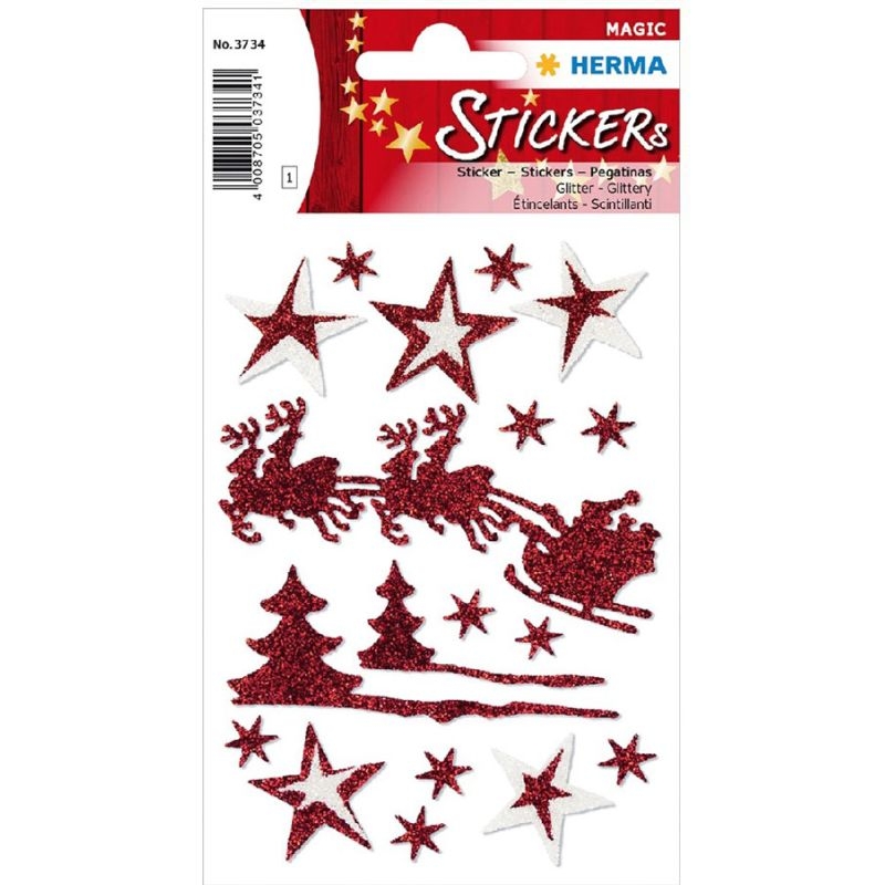 Χριστουγεννιάτικα Αυτοκόλλητα με glitter - Βόλτα με το Έλκηθρο (18τμχ.) - Herma