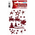 Χριστουγεννιάτικα Αυτοκόλλητα με 15 πολύχρωμα αστέρια, ένα έλκηθρο και δύο δέντρα με glitter σε ένα φύλλο σε διαφορετικά μεγέθη με επίχρυσες λεπτομέρειες!