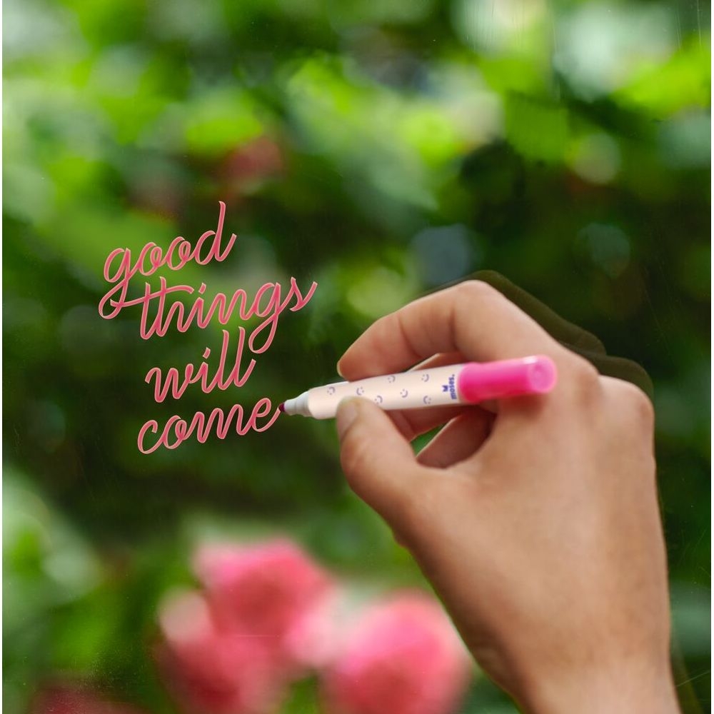 Μαρκαδόροι για παράθυρα σε έξι χαρούμενα χρώματα θα δημιουργήσουν ότι ατμόσφαιρα θέλετε ανάλογα με την περίοδο του χρόνου. Αφήστε τη δημιουργικότητά σας ελεύθερη ή χρησιμοποιήστε τα πρότυπα που περιλαμβάνονται στο σετ: τα χαρούμενα μοτίβα γεμάτα λουλούδια, πεταλούδες και ταιριαστά γράμματα μπορούν να χρησιμεύσουν ως έμπνευση. Τα παράθυρα, τα πάνελ και άλλες λείες επιφάνειες μπορούν να σχεδιαστούν πολύχρωμα σε ελάχιστο χρόνο και να λάμπουν στα χρώματα λευκό, πράσινο, μπλε, κίτρινο, μοβ και ροζ. Αλλά μην ανησυχείτε αν κάνετε κάποιο λάθος ή δεν σας αρέσει πια το έργο τέχνης σας: Τα δυνατά, ματ χρώματα των μαρκαδόρων κιμωλίας μπορούν να σκουπιστούν με ένα υγρό πανί και θα έχετε ξανά μια καθαρή επιφάνεια σε ελάχιστο χρόνο.